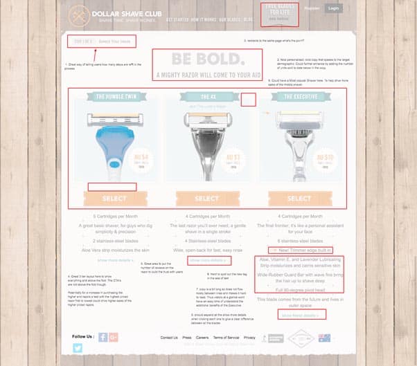 Perhaps after viewing the video or being referred by a friend, you hit their homepage. Immediately you sense that their site is a well-oiled machine. We know that DSC were split-testing different versions of their site at the time, which is an effective way of finding out which design has the highest conversion rate.