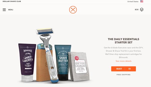 Dollar Shave Club smashes it with their product imagery, which is all-important for an ecommerce brand.