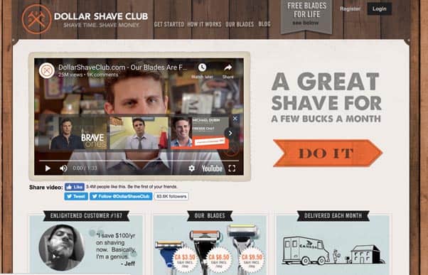 So that’s how they got started. Let’s dive right in and look at the elements that made Dollar Shave Club’s first campaign such a roaring success, plus the mechanics of their ongoing strategy. As a bonus, we’ll also explore areas they can tweak in their marketing right now to achieve even bigger growth in 2018.