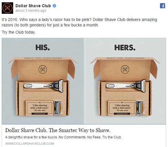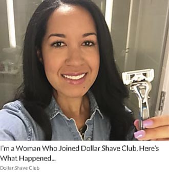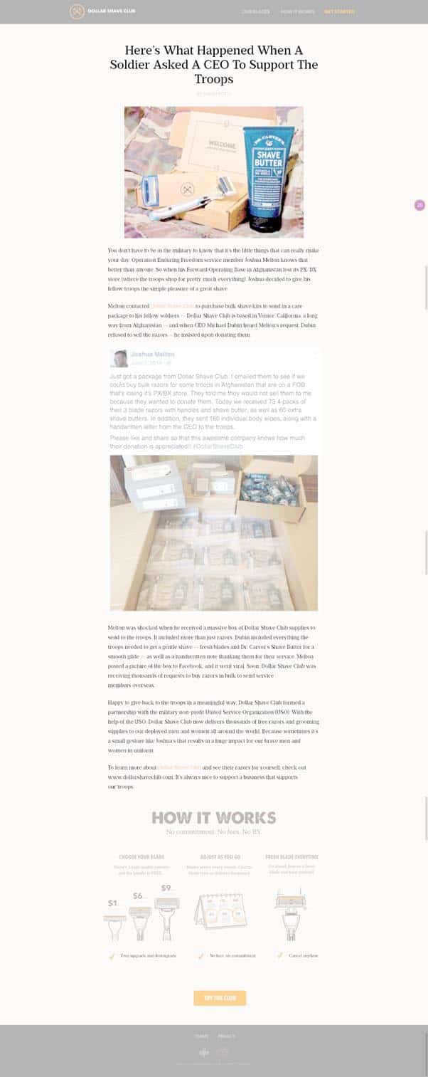 They’ve run an interesting piece of content where a female customer blogs about her experience with Dollar Shave Club. This bucks their marketing trend a little since their customers are usually male.