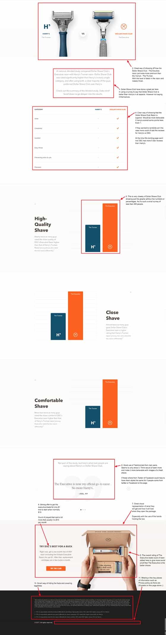 They conducted a very small study in which DSC’s razors came out as superior to Harry’s, and they’ve included the results in this native ad. Since the data is ‘scientific’, this adds to their credibility and dispels any doubts customers may have about the quality of their razors. They also use their superior customer ratings to boost their brand.