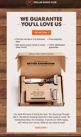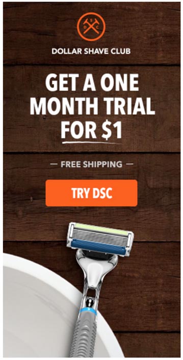 Again, they’ve used the concept of ‘disrupting’ to pull customers into their exclusive club. People love a deal, and they will also want to join the ‘zillions’ who are backing Dollar Shave Club.