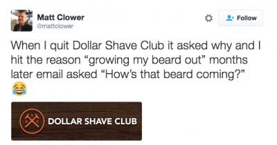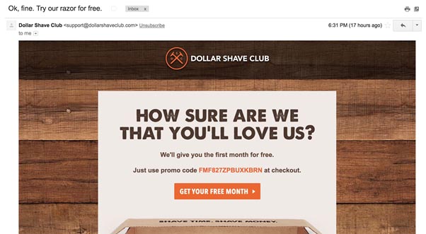 One huge flaw in their automation is that you receive the same email over and over again if you don’t commit to a purchase. The headline, ‘Ok, fine. Try our razor for free.’ looks less like the spontaneous natural language it has been crafted to mimic, and more like the calculated marketing it is.