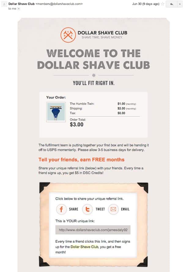They even take advantage of their transactional emails to ask for referrals from their customers, which is something that most companies miss.