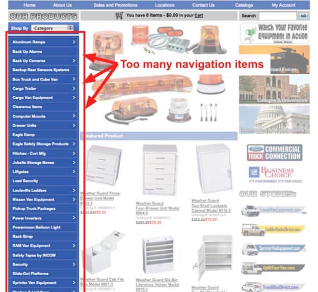 An effective way to make your navigation pane searchable rather than specific is to look for different ways to group your products together. Sometimes there are a lot of items that have a single intended use, so listing your products by function could significantly simplify your navigation pane.